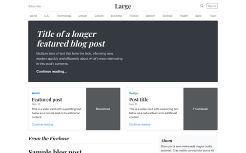 Magazine like blog template with header, navigation, featured content.